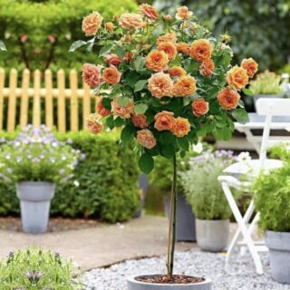 Высота/диаметр растения (10 лет): 1-1,1 м Время цветения: весь сезон, до заморозков Морозостойкость: -25 Местоположение: солнце Оригинальность: махровые цветы Отличительная черта: компактный куст Особенность: обильное цветение Роза штамбовая «Свит Дрим» (флорибунда)