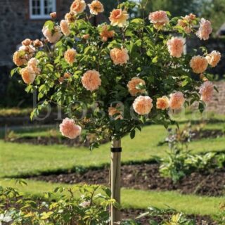 Цветки: в кистях по 3-5 шт.; абрикосового цвета, нередко с лососево-розовым румянцем. Густомахровые, иногда квартированные. Не выгорают. Долго держатся на кусте. Бутоны округлые, цветки уплощенно-шаровидные. Распускаются поочерёдно, цветение кажется непрерывным.