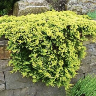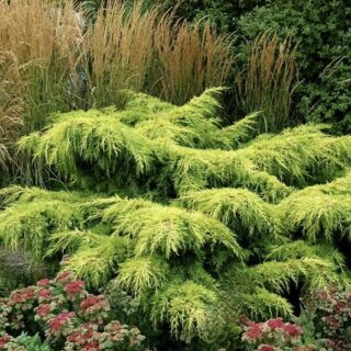 Первоначальная цена составляла 18,90 Бел.руб.13,23 Бел.рубТекущая цена: 13,23 Бел.руб.В корзинуЭффектный сорт, прекрасно сочетает выносливость и высокую декоративность. Отличается компактной стелющейся кроной и яркой окраской хвои. Растёт вширь значительно быстрее, чем в высоту — ежегодный прирост составляет около 5-7 см вверх и до 10 см в стороны. К 10 годам растение достигает 0,5 м в высоту и около 1 м в ширину, образуя аккуратный золотистый ковёр на участке. Хвоя густая, мягкая, с насыщенным золотисто-жёлтым оттенком, который сохраняется даже зимой, лишь приобретая лёгкий бронзовый отлив. Является ярким акцентом в саду в любое время года и отлично вписывается в различные композиции.