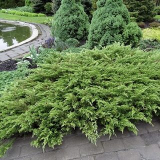 Первоначальная цена составляла 18,90 Бел.руб.13,23 Бел.рубТекущая цена: 13,23 Бел.руб.В корзинуВечнозелёный хвойный кустарник с широкой раскидистой кроной. Высота достигает 1 м, диаметр кроны 2,5 м. Рост быстрый — годовой прирост 20 см в ширину. Крона густая и пышная. Хвоя чешуевидная, зелёно-голубая. Серо-голубые шишкоягоды небольшого размера, шаровидные.