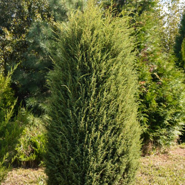 Хвойный вечнозелёный колонновидный кустарник с густой кроной. В 10 лет достигает 2 м. Высота взрослого растения 4 м, диаметр 1,5 м. Ветви прямые, плотно прижатые к стволу, растут вверх. Хвоя в период вегетации зеленовато-сизая, зимой тёмно-зелёная, игольчатая, неколючая. Темп роста медленный. Годовой прирост составляет 15 см в высоту и 5 см в ширину, а набрав максимальную для сорта высоту, начинает уплотняться и разрастаться в ширину.