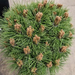 Красивое густоразветвлённое дерево. Крона компактная, коническая или колоновидная. Строгая форма кроны, длинная хвоя. Кончики жёстких, блестящих, тёмно-зелёных игл загнуты внутрь, что особенно заметно на молодых побегах. Шишки овальные, длиной до 8 см, по 2-3 штуки на ветке, сначала голубые, постепенно приобретают тёмно-коричневый или чёрный окрас. Медленнорастущая, годовой прирост около 15 см. К 10 годам он вырастает до 1,5 м в высоту и 1 м в диаметре.